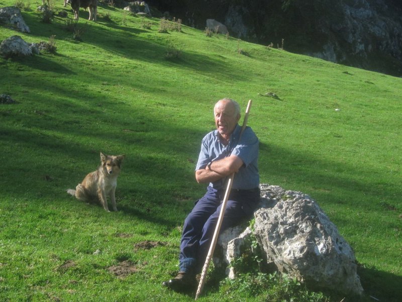 Allí, en la majada de Gumartini, este pastor ya jubilado resiste hasta que le hecha la nieve ayudado por su hermana Covadonga y una "alumna", como él llama a una joven que está aprendiendo el oficio y que por suerte este año le es de gran ayuda.