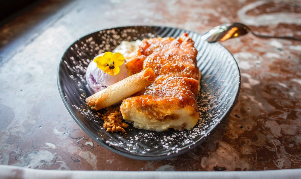 En Zielou, el espacio gastronómico situado en la estación de Chamartín, el chef Kiko Solís reinventa también este tradicional dulce. Así, este postre, que estará disponible en el menú ejecutivo hasta el 31 de marzo, está elaborado a partir de pan brioche infusionado con una crema inglesa, leche de coco y con unas natillas de haba tonka, un semilla originaria de las Antillas y del Amazonas, que ofrece el toque exótico.
