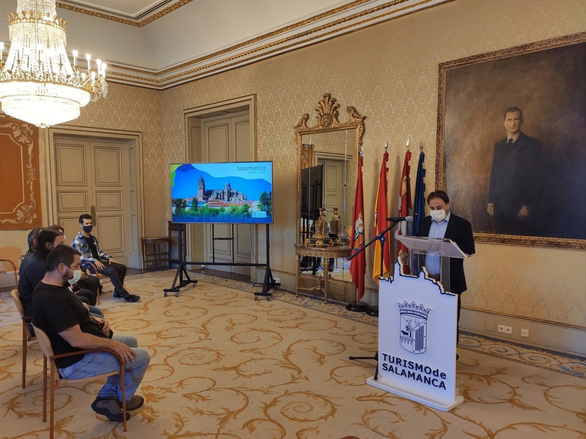 El concejal de Turismo, Fernando Castaño, en la presentación de 'Salamanca dorada, azul y verde' - EUROPA PRESS