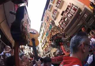 Otro de los grandes 'momenticos' que San Fermín nos deja, el día 7 a partir de las 10 de la mañana, es la procesión del santo, que se introduce en las antiguas calles de su ciudad y que encuentra a su paso balcones abarrotados de fieles y curiosos y cánticos en su honor, como es el caso de la 'Aurora', seguido por los gigantes y cabezudos quienes despiertan entre los más pequeños, una extraña pero interesante mezcla entre el asombro y el miedo.