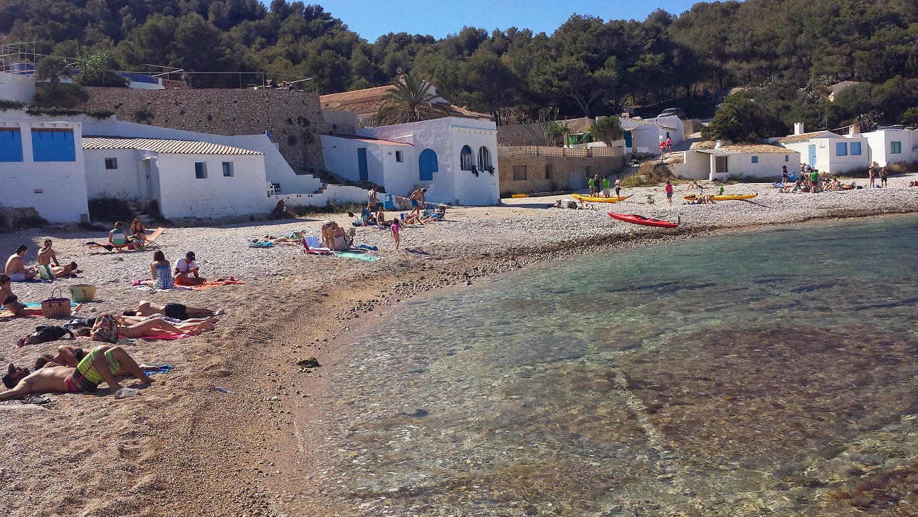 La pequeña Cala la Barraca, más conocida como El Portitxol, nombre que debe al islote situado justo en frente, es una de las playas más bonitas y singulares de la costa de Jávea (Alicante).