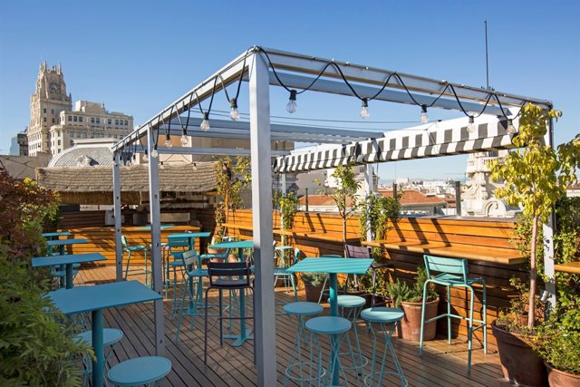 Buscando las mejores vistas de los tejados madrileños, éstas las podrás disfrutar en la azotea de The Hat, ubicado en un céntrico palacete rehabilitado al lado de la Plaza Mayor, donde es posible compartir una cerveza o un cóctel vespertino para aliviar los calores estivales. Los martes de junio y de julio tiene lugar el ciclo '2 Many Chefs Summer Festival', cenas degustación con cinco restaurantes madrileños invitados como TriCiclo, Medea, La Raquetista, Tripea y Tres Por Cuatro, que ofrecerán su cocina canalla y moderna.