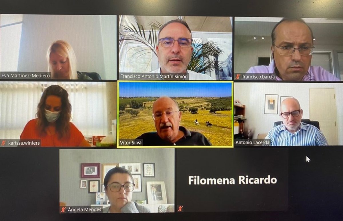 Francisco Martín Simón se ha reunido este miércoles de forma telemática con el presidente y el director general de la Entidad Regional de Turismo de Alentejo, Vítor Silva y António Lacerda, respectivamente, para analizar varios proyectos de interés.