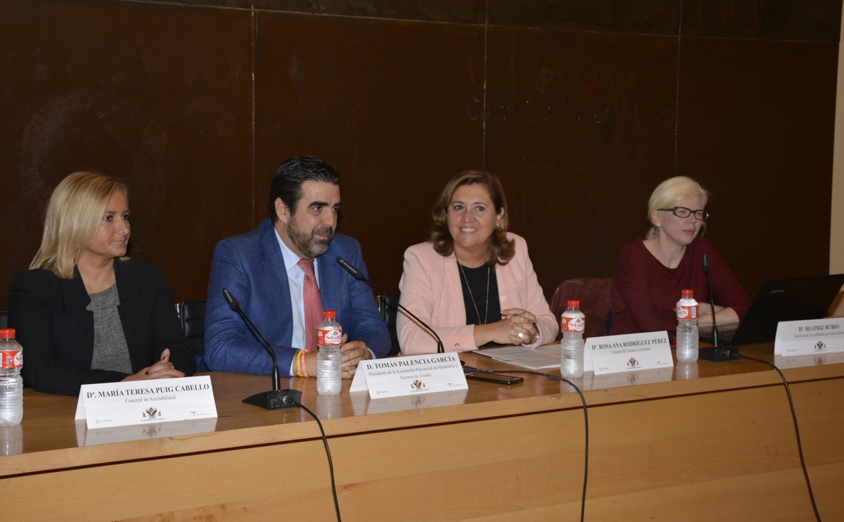 Al encuentro han asistido también el presidente de la Asociación de Hostelería y Turismo de Toledo, Tomás Palencia; el delegado territorial de la ONCE en Castilla-La Mancha, Carlos Javier Hernández, además de numerosos empresarios de la ciudad adheridos al SICTED, representantes de asociaciones que conforman el Consejo Municipal de Políticas de Discapacidad, así como alumnos y alumnas del Ciclo Superior de Gestión de Alojamientos Turísticos del I.E.S Universidad Laboral.