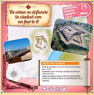 En esta ocasión la visita, orientada hacia todos los públicos, tendrá como escenario el Fuerte de San Cristóbal, recorriendo su exterior y visitando el Centro de Interpretación de las Fortificaciones de la Frontera, según informa el Ayuntamiento de Badajoz en nota de prensa.
