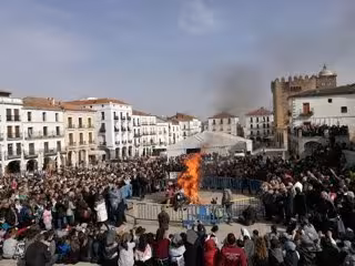 La ciudad de Cáceres ha dado el pistoletazo de salida a su carnaval este viernes, día 24, con la tradicional quema del 'Pelele' en la Plaza Mayor, que ha reunido a cientos de vecinos y escolares de la ciudad en torno a esta fiesta de las Lavanderas.
