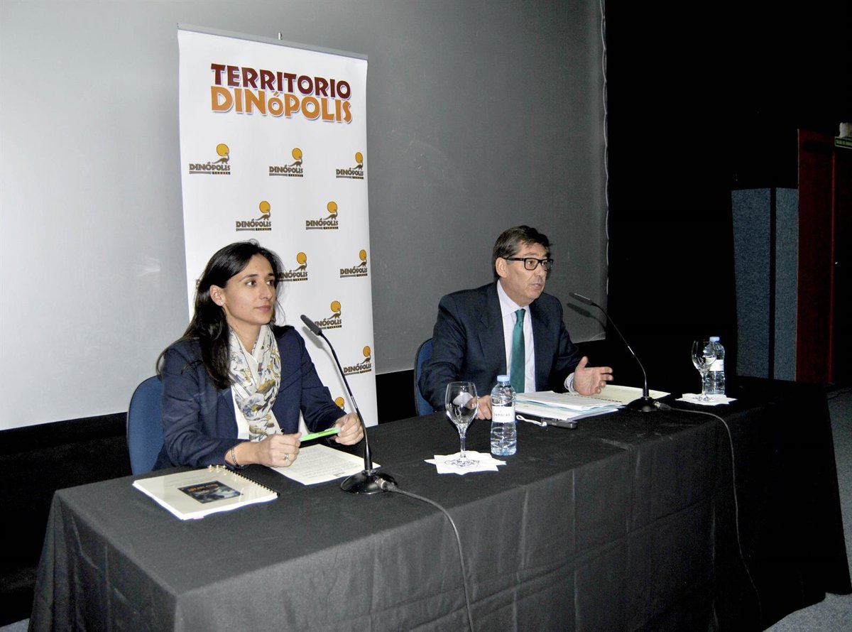 El presidente de Dinópolis y consejero de Industria e Innovación de Gobierno de Aragón, Arturo Aliaga, acompañado por la directora-gerente del parque, Higinia Navarro, han presentado este miércoles el balance del parque paleontológico turolense, ha informado Dinópolis en una nota de prensa.
