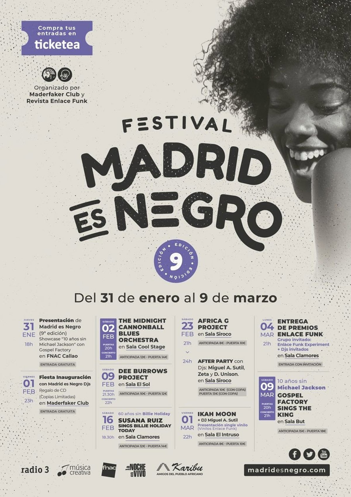 El festival arrancará con una muestra del espectáculo '10 años sin Michael Jackson' del grupo Gospel Factory en el Forum Fnac de Callao, mientras que la fiesta de inauguración tendrá lugar el día siguiente en el Maderfaker Club de Malasaña con una sesión especial en la que se regalará un disco conmemorativo.
