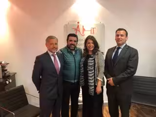 El presidente de la Asociación Provincial de Hostelería y Turismo de Toledo (AHT), Tomás Palencia, ha mantenido una reunión con responsables del parque temático Puy du Fou, entre ellos, el consejero Delegado, Erwan de la Villeón y el director Administrativo y Financiero, José Ramón Molinero, acompañado de Cuca Díaz, miembro del Comité Ejecutivo, y del secretario de la AHT, Valentín Salamanca, para plantear y analizar posibles líneas de colaboración futuras con los promotores del parque.