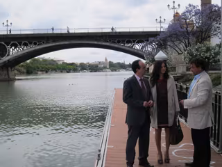 'Sígueme la corriente' pone a disposición de empresarios y visitantes de la ciudad una red de siete pantalanes o pequeños muelles para embarcaciones turísticas y de recreo en torno a Triana --en el Muelle de las Delicias, de Nueva York, en el Paseo de la O, Chapina y calle Betis, a falta de inaugurar uno de ellos--. El consejero ha realizado una visita al del Paseo de la O este lunes junto a la delegada territorial de Turismo y Comercio en Sevilla, Granada Santos, y el gerente del Plan Turístico.