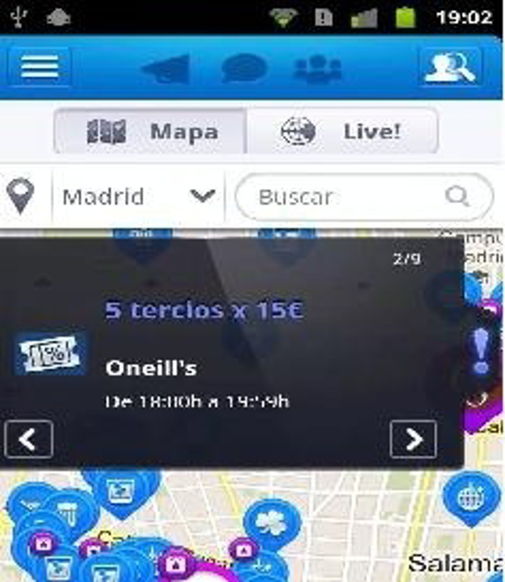 Liveclubs es una aplicación que recurre a esta opción para mostrarnos los locales nocturnos que hay a nuestro alrededor, además de la ubicación nos enseña el ambiente y las ofertas. Podemos encontrar reseñas, promociones, fiestas y cualquier evento que se celebre en los locales.