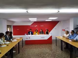 Imagen de la reunión de Maroto (al fondo, segunda por la izquierda) con miembros del PSOE y la fundación Rehabitar. - EUROPA PRESS