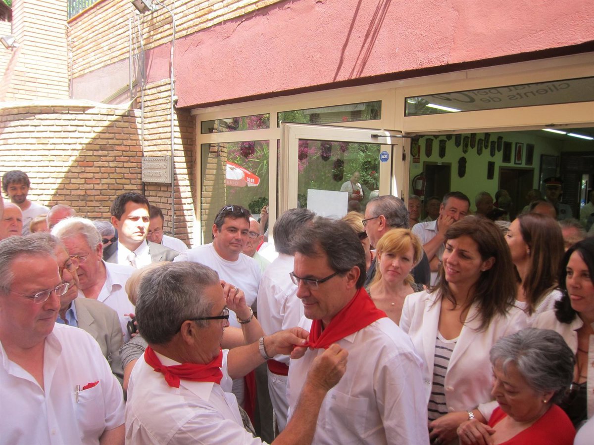 El presidente de la Generalitat, Artur Mas, ha asistido este viernes a la fiesta de comienzo de los San Fermines en la Casa de los Navarros de Barcelona, donde ha encendido el tradicional chupinazo de las doce.
