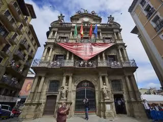 Ayuntamiento de Pamplona en el momento en el que de celebrarse los Sanfermines 2020 hubiera tenido lugar el famoso chupinazo, en Pamplona, Navarra (España), a 5 de julio de 2020. Pamplona afronta este lunes con medidas para intentar evitar que se produz - Eduardo Sanz - Europa Press
