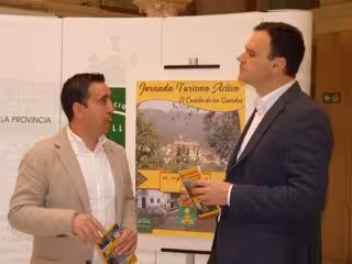 El alcalde de El Castillo de las Guardas, Gonzalo Domínguez, ha presentado este jueves junto al diputado del Área de Concertación, José Barroso, en la Casa de la Provincia, las Jornadas de Turismo Activo del municipio, que se desarrollarán los días 10, 11 y 12 de marzo, con la colaboración de la Diputación de Sevilla, a través de Prodetur.
