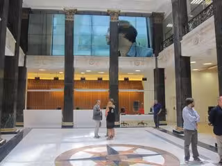 Por su parte, Aldekoa ha resaltado que el nuevo recinto constituye una oficina "para el futuro" que representa "lo que somos hoy, pero, sobre todo, hacia donde vamos a ir". Además, ha destacado que, debido a su ubicación en pleno centro de la villa, la nueva oficina será una "bisagra" entre el Ensanche y el Casco Viejo bilbaíno, y que se sitúa, asimismo, junto a la "futura llegada" del Tren de Alta Velocidad (TAV).