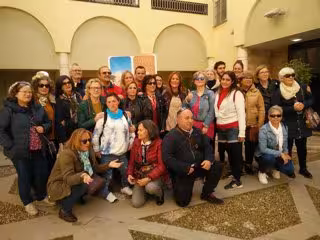 El grupo ha comenzado su visita accesible, acompañado por un guía turístico y un intérprete de signos, en la plaza de Santa María y desde este enclave han pasado por el Salón Mudéjar, el Arco de San Lorenzo, el Raudal de la Magdalena y el Refugio Antiaéreo.