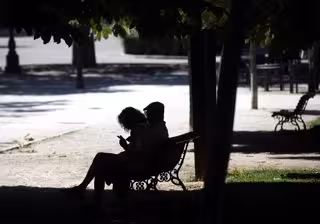 Una pareja sentada en un banco en el Parque del Retiro en Madrid - Óscar Cañas - Europa Press