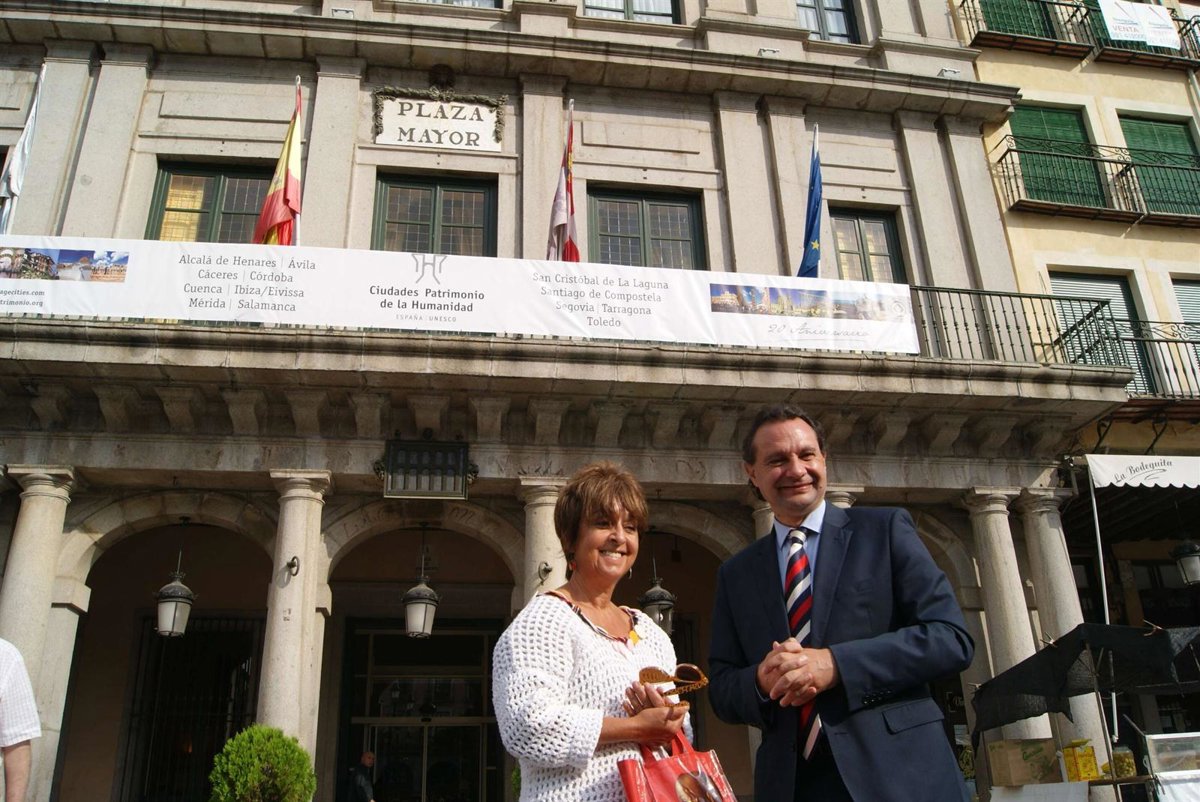 El alcalde, que ha posado junto a ella con la edil de Patrimonio Histórico y Turismo, Claudia de Santos, ha explicado en declaraciones recogidas por Europa Press que con esta banderola gigante se pretende exhibir el potencial de las Ciudades Patrimonio, informar a los ciudadanos de los territorios que forman parte del Grupo y festejar el aniversario.