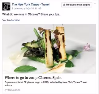 El título de Capital Española de la Gastronomía en 2015 está reportando a Cáceres un importante retorno en forma de proyección internacional. El periódico 'The New York Times' la acaba de incluir en un listado de 52 lugares del mundo a visitar este año, y lo ha hecho centrándose en su oferta culinaria.