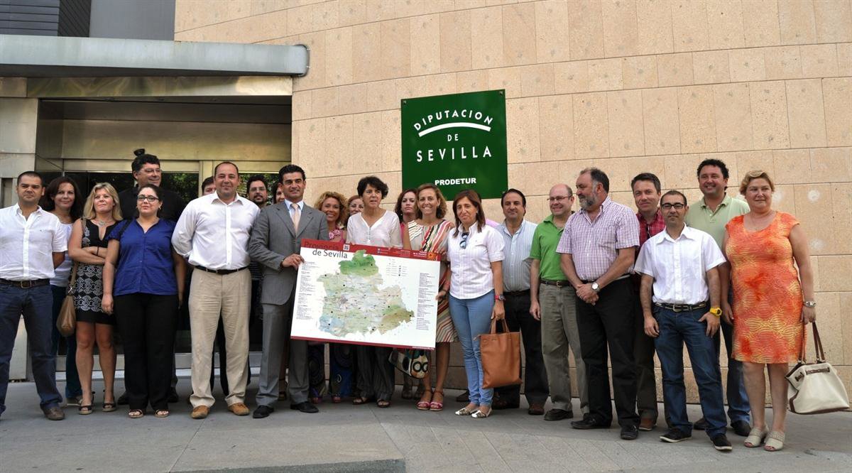 La diputada de Empleo e Innovación de la institución provincial sevillana, Dolores Bravo, ha entregado este jueves a alcaldes y delegados de Turismo de 30 ayuntamientos sevillanos los planos de información turística de sus respectivos municipios. Con esta nueva edición de planos turísticos, suman ya 75 los municipios sevillanos que cuentan con este material de información turística cuya edición ha corrido a cargo de la Diputación de Sevilla.