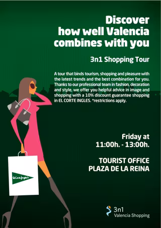 El tour se realizará los viernes y tendrá una duración de dos horas, con salida a las 11.00 horas desde la Tourist-Info de la Plaza de la Reina y parada en El Corte Inglés Pintor Sorolla/Colón. La visita estará guiada por expertos en moda, decoración y estilo, para que los viajeros localicen de un modo fácil y rápido los puntos donde realizar sus compras.