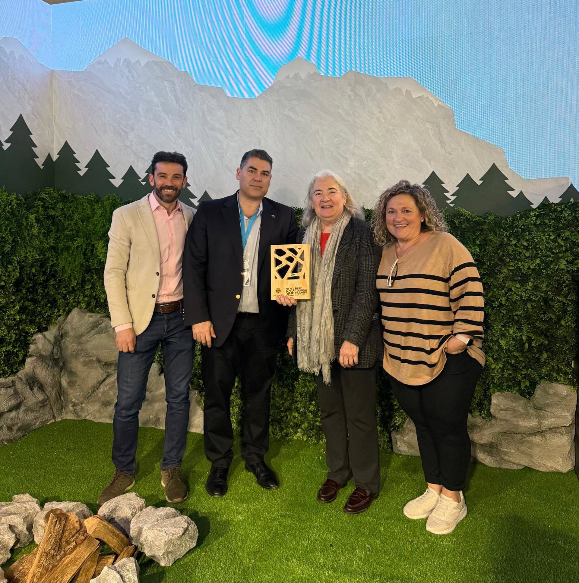 La entrega se ha materializado con la presencia del alcalde, Enrique Pueyo, que ha recogido el prestigioso sello de calidad de ONU Turismo acompañado de la responsable de la OMT en el Ministerio de Turismo, Teresa Alcedo, y el presidente de la asociación de Los Pueblos Más Bonitos de España, Francisco Mestres.