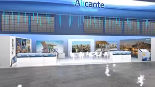 El stand de Alicante dispone de 80 metros cuadrados diáfanos. El espacio se divide en una zona profesional con mesas y otra zona institucional, así como dos mostradores de información turística y se instala una gran pantalla en el centro y otra pantalla táctil de información.
