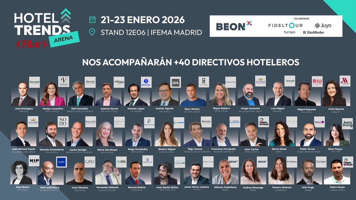BEONx volverá a celebrar el foro 'Hotel Trends Arena' dentro del marco de Fitur 2026, que se celebrará entre el 21 y 25 de enero y donde volverá a reunir a más de 40 directivos de importantes cadenas hoteleras en España mediante un programa de mesas redondas.