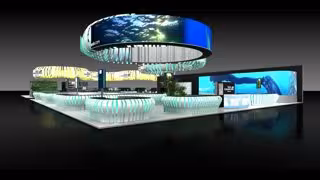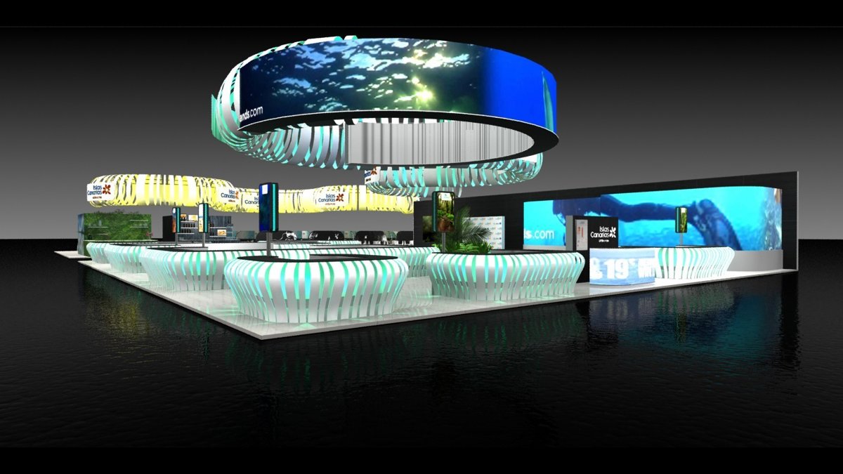 El pabellón albergará a 553 empresas con mil personas inscritas en el stand, y cada isla contará con un espacio exclusivo que estará equipado con una espectacular megapantalla LED de formas curvas que colgará del techo. Con más de 100 m2 de superficie, esta instalación permitirá la proyección de audiovisuales de gran formato y constituye el elemento más destacado de un proyecto de gran impacto visual.