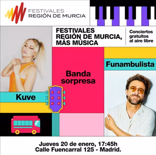 Este será un concierto gratuito del que se podrá disfrutar en pleno corazón de la capital de España, y que será la forma perfecta para presentar esta iniciativa que impulsa el posicionamiento de la Región de Murcia como un destino privilegiado para disfrutar de grandes festivales de música, en un territorio que cuenta con más de 300 días de sol al año y una oferta complementaria variada y de calidad.