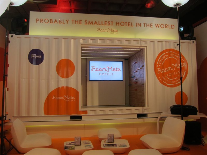 Y original también la propuesta de los visionarios Room Mate Hotel que presentan el hotel más pequeño del mundo. Un establecimiento de tan sólo 15 metros cuadrados, un 'tetris' modular ideado por el estudio de Teresa Sapey y que cuenta con recepción, dormitorio con baño completo, lounge, gimnasio y zona de desayunos.