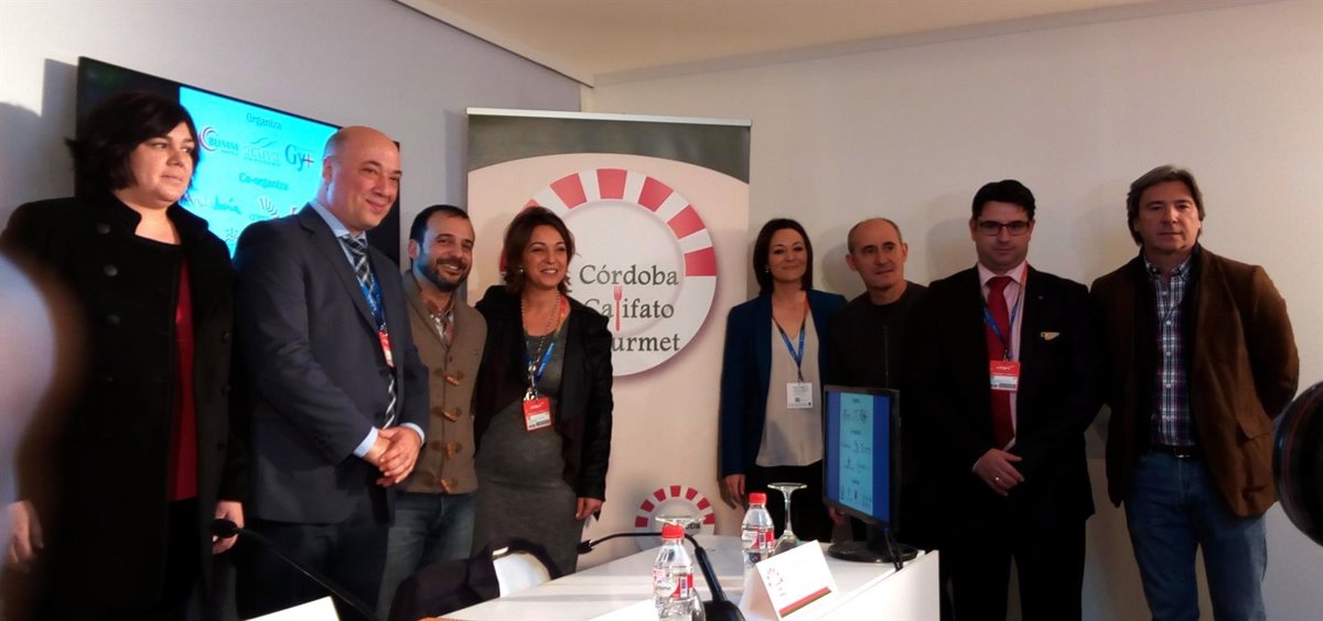 El presidente de la Diputación de Córdoba, Antonio Ruiz; la alcaldesa de Córdoba, Isabel Ambrosio; la delegada del Gobierno andaluz en Córdoba, Rafi Crespín; el chef Paco Pérez, chef del Restaurante Miramar; y Juanma Barbera, organizador, han participado este jueves en la presentación del evento en la Feria Internacional de Turismo (Fitur 2016).