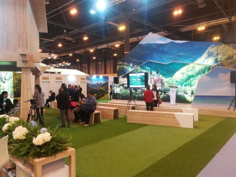 El Principado de Asturias promociona 'La vuelta al paraíso' en su stand "multisensorial" que recrea el paisaje asturiano, en línea con los objetivos del Programa de Turismo Sostenible 2020 y obra del artista asturiano Juanjo Palacios.