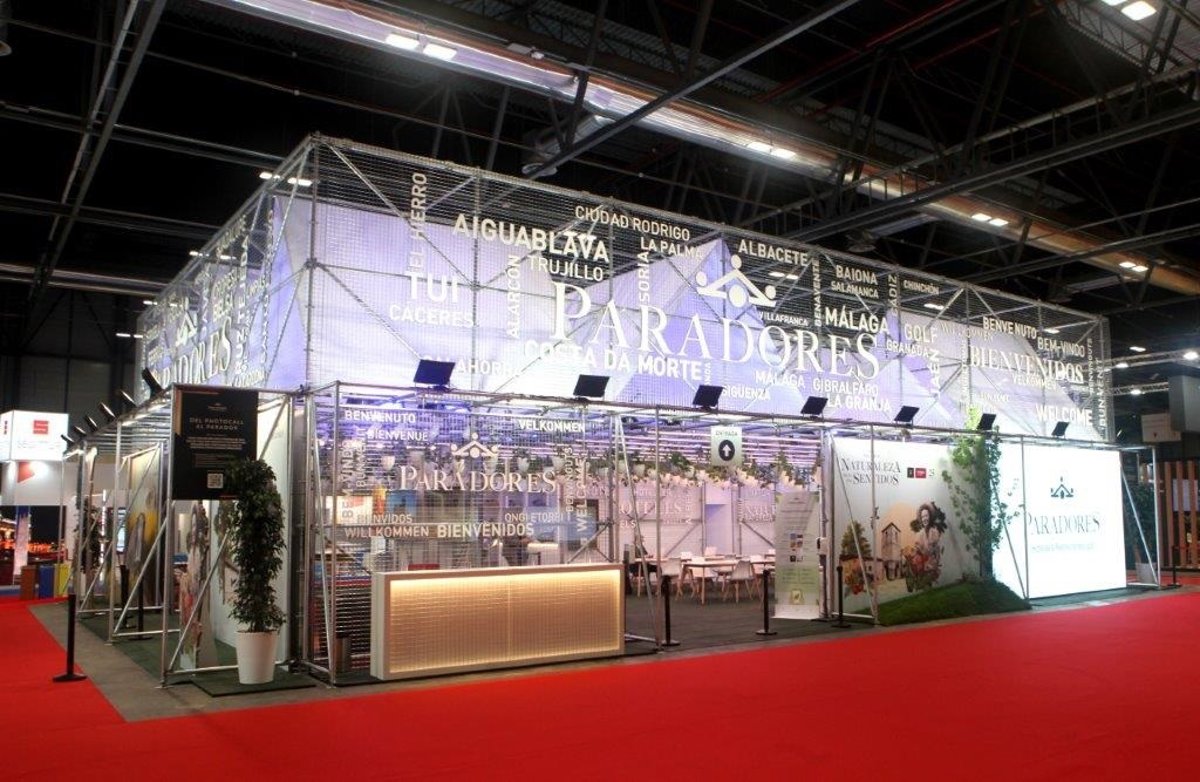 Paradores participa en esta edición de Fitur con un stand en el que se unen seguridad y sostenibilidad. El stand tiene una distribución muy abierta que garantiza la máxima ventilación natural.