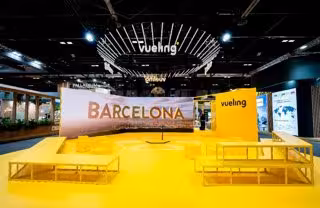 La estructura central del stand, llamado 'El Corazón de Vueling', ofrece a los visitantes poder sobrevolar de forma inmersiva un destino e incluye un juego interactivo que reta a los asistentes a poner a prueba sus conocimientos sobre el centro de operaciones de la aerolínea.