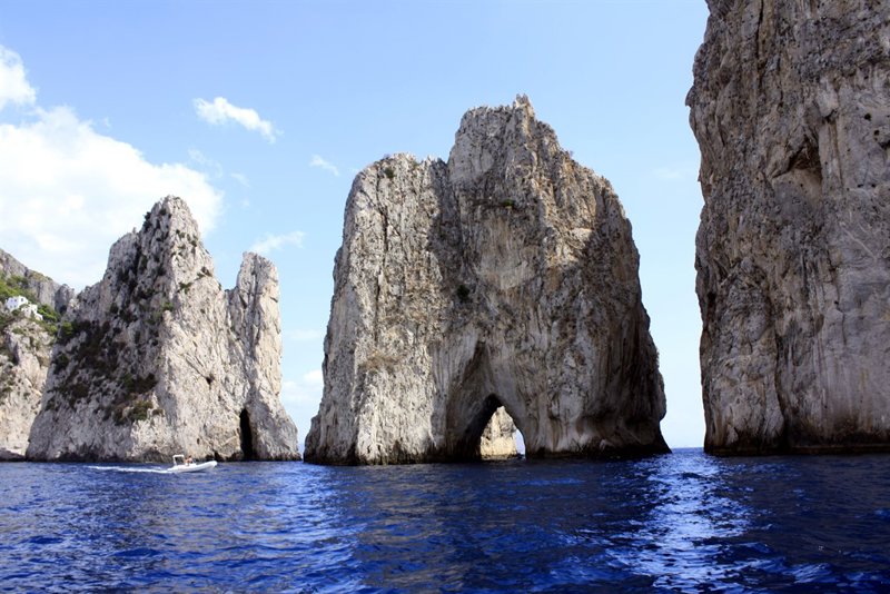 Capri es un lugar de extremos. Está rodeada de mar pero no tiene casi playas, por lo que si quieres disfrutar de la isla al cien por cien, hazte con un barco con el que visitar cosas tan maravillosas como Il Faraglioni, unas rocas gigantescas que emergen del mar y que ya forman parte de la iconografía de la isla.