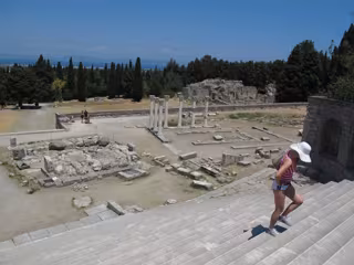 El alma y la trascendencia del ilustre médico se pueden apreciar con más intensidad a las afueras de la ciudad en Asklepleion. El santuario, levantado a 4 kilómetros en una colina, estaba dedicado a Asclepio, el dios de la salud, y servía como centro de curación y escuela de medicina de los alumnos de Hipócrates. Para Giannis Balalis, vicealcalde de Kos que nos acompaña en esta visita con un sol de justicia a las ruinas esparcidas en tres niveles, resulta un lugar mágico- "Lo es -comenta el político griego que define a su isla como "un sueño"- porque Hipócrates, que era uno de los pocos privilegiados que en su época podían practicar la medicina por su origen familiar, quiso facilitar el acceso de cualquier persona a su aprendizaje y finalmente escribió y transmitió sus experiencias y terapias que se extendieron con mucha más facilidad por la Antigua Grecia y el resto del mundo conocido. Hipócrates fue en realidad el hombre que creó la medicina como ciencia. Antes de su existencia sólo era magia y él la convirtió en ciencia separándola de la religión"