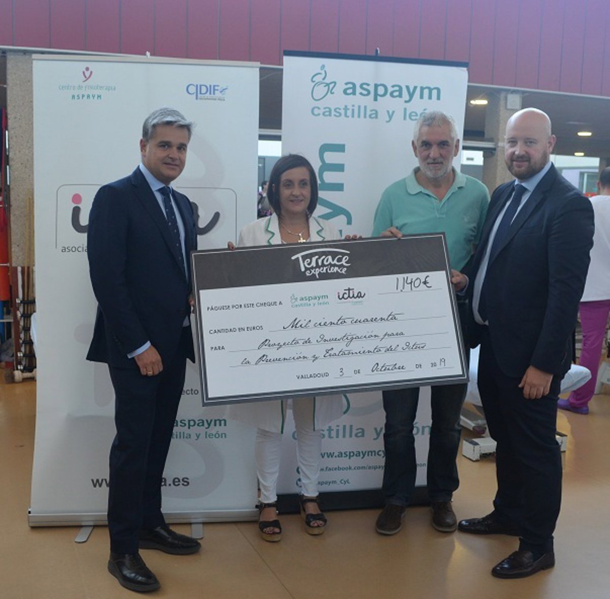 ASPAYM Castilla y León ha recibido en su sede de Valladolid a los representantes del AC Hotel Palacio de Santa Ana, que a lo largo de los jueves de este verano recaudaron fondos a través de la venta benéfica de camiseta en el marco de su V encuentro semanal festivo Terrace Experience.