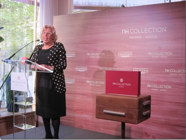 La alcaldesa de Madrid, Manuela Carmena, destacó el valor económico y social del turismo en la capital de España durante la inauguración del nuevo 'NH Collection Suecia', el nuevo establecimiento de cinco estrellas de la cadena hotelera que ha abierto sus puertas junto al Círculo de Bellas Artes y que busca convertirse uno de los hoteles más sofisticado de la capital.