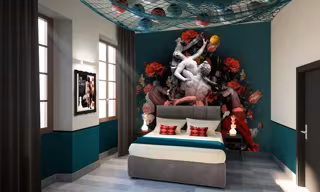 Las habitaciones del complejo ha sido decoradas incorporando cuatro aspectos típicos del Renacimiento Italiano en cada una de las plantas del edificio: los juegos y las actividades de entretenimiento, el arte y la arquitectura, la ciencia y los descubrimientos y la relación entre lo sagrado y lo profano.