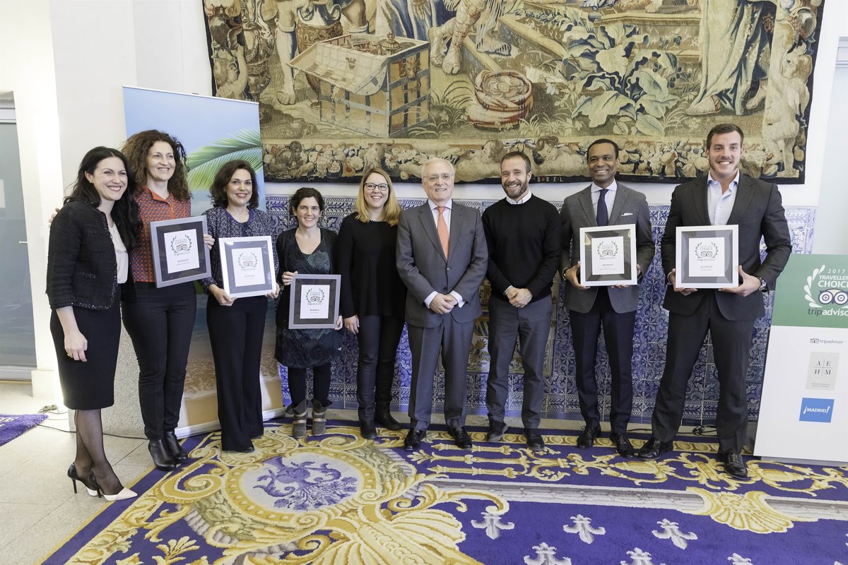 Cinco hoteles de la Asociación Empresarial Hotelera de Madrid (AEHM) se han llevado el 'Óscar' de la industria hotelera por la calidad y la excelencia de sus servicios en la 15º edición de los Premios Travellers Choice de TripAdvisor 2017.