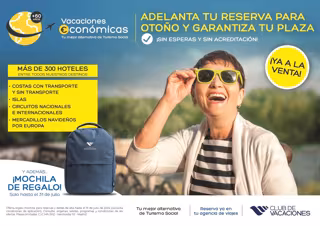 Además, y solo hasta el 31 de julio, los clientes que formalicen su reserva del programa Vacaciones Económicas recibirán una mochila de Club de Vacaciones de regalo.