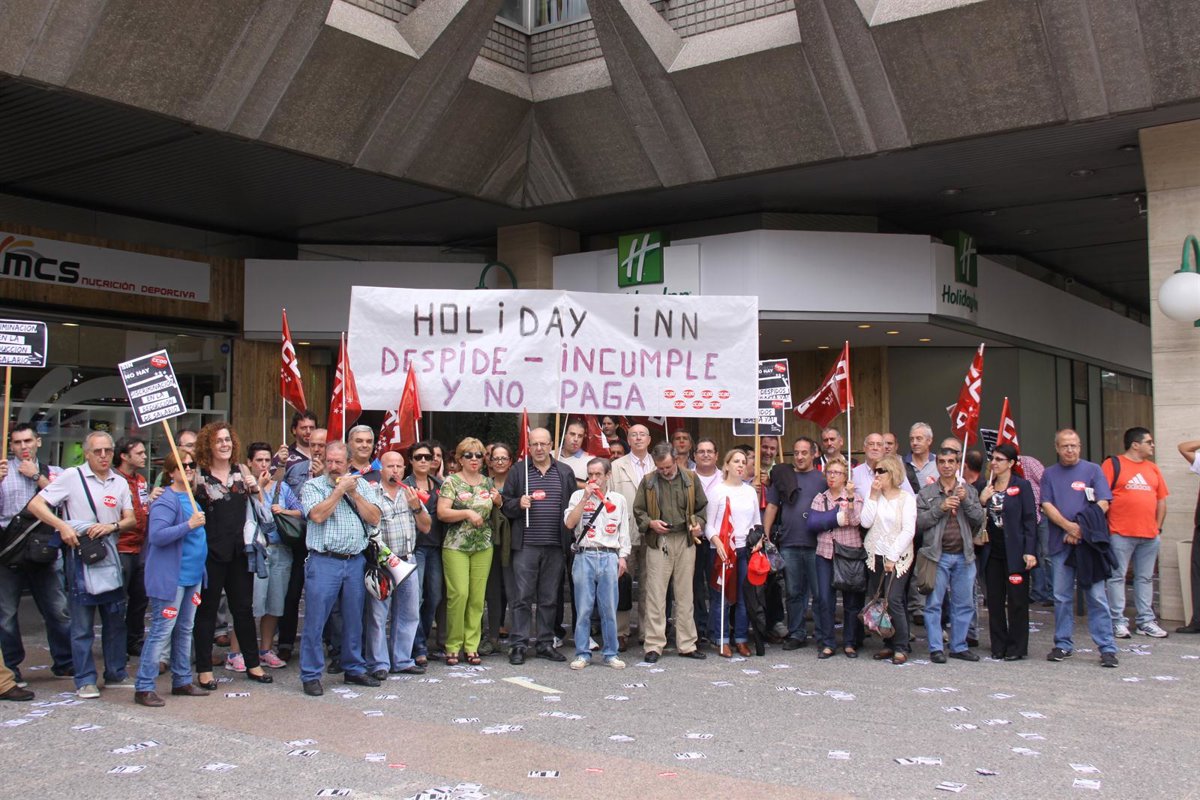 Varias decenas de empleados del hotel Holiday Inn de Madrid se han manifestado en la explanada de la puerta principal del establecimiento para protestar por la gestión, la inaplicación del convenio y los 14 despidos, según explicó en declaraciones a Europa Press, la secretaria general de la Federación Estatal de Comercio, Hostelería, Turismo y Juego de CC.OO (FECOHT), Paloma Onega.