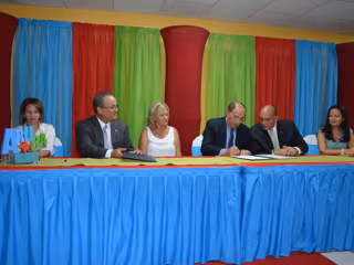 El viceprimer ministro arubeño de Asuntos Económicos, Mike de Meza, y el presidente del Grupo Piñero, Pablo Piñero, fueron los encargados de firmar el acuerdo para el desarrollo del nuevo complejo, junto al ministro de Turismo, Otmar Oduber.