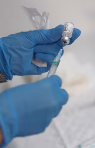 Un enfermero prepara una vacuna antes de inyectársela a un trabajador sanitario en las instalaciones del Hospital Enfermera Isabel Zendal, en Madrid, (España). - Eduardo Parra - Europa Press