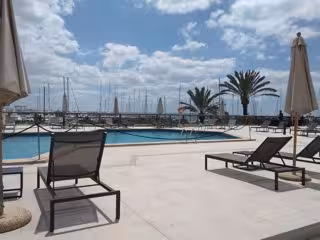 Piscina con la separación de dos metros entre hamacas del hotel Meliá Palma Marina. - EUROPA PRESS - Archivo