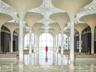 El hotel de lujo, diseñado por Woods Bagot, está inspirado en una interpretación moderna de la Mezquita y el Sultanato de Orán y cuenta en su oferta gastronómica con diez restaurantes, además de gimnasio, piscina y spa.