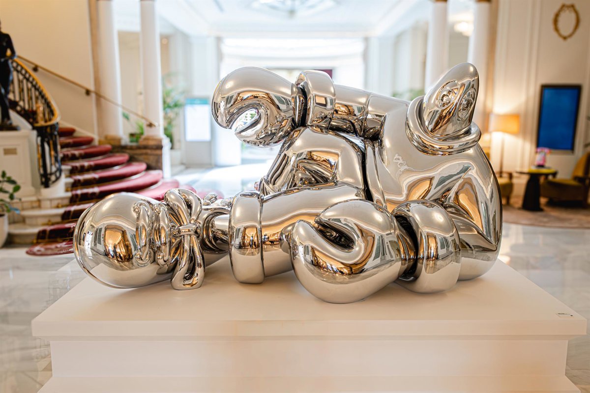 La exhibición destaca por la presencia de una langosta de gran formato fabricada en acero inoxidable pulido situada en el vestíbulo, además de una serie de tótems y esculturas que reinterpretan símbolos de la cultura pop y la historia del arte.
