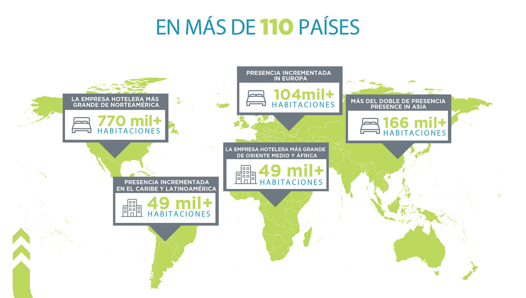 Ambos grupos sumarán 1,1 millones de habitaciones, además un poderoso programa de fidelización, con presencia en 110 países. Con la finalización de esta adquisición, la distribución de Marriott se duplica en Asia, Oriente Medio y África combinados.